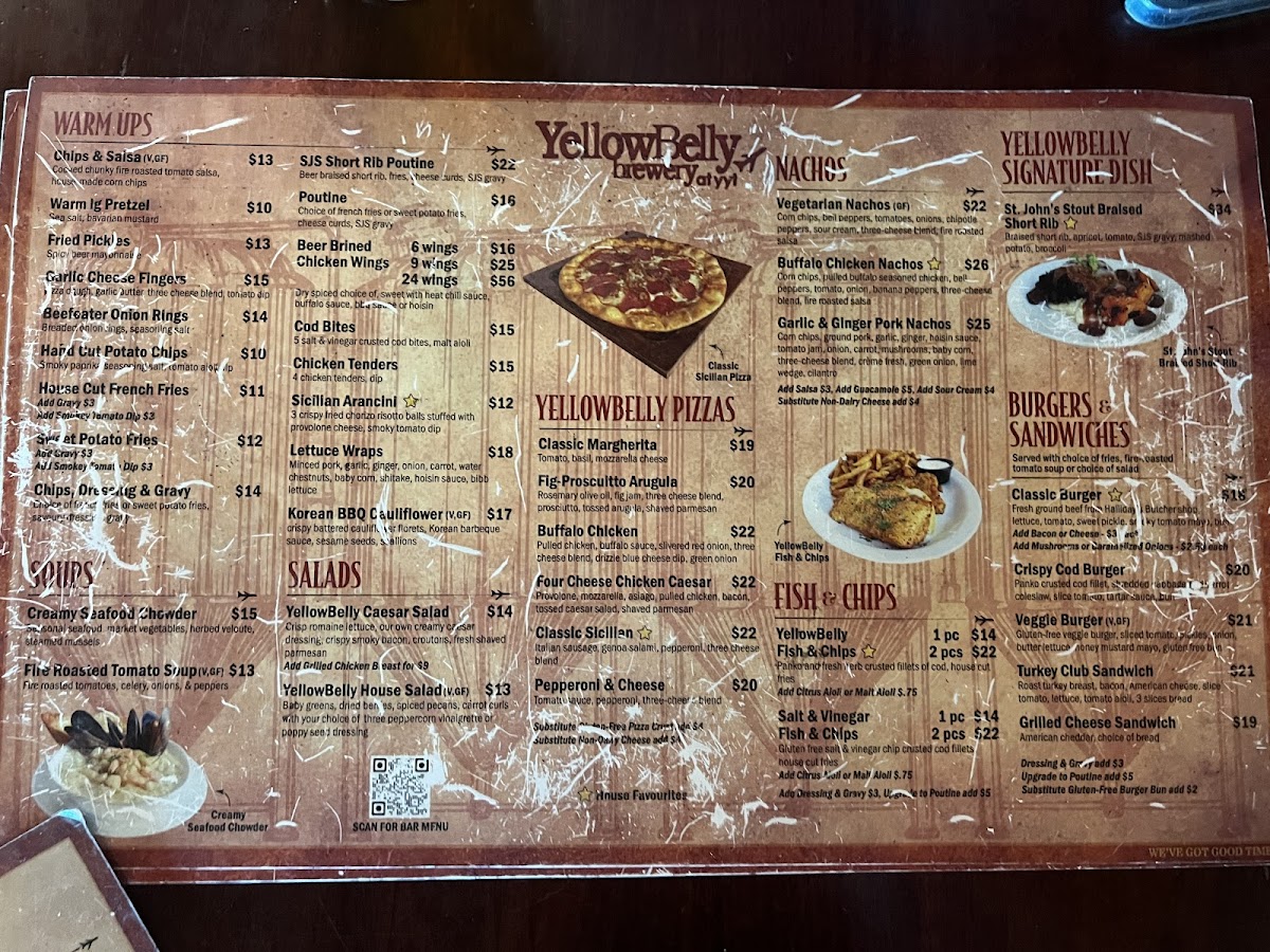 Welcome to YellowBelly Brewery YYT, a hidden culinary gem nestled in St. John's International Airport, conveniently located on Level 2. This vibrant spot offers travelers a refreshing escape with its enticing menu and expertly crafted beers. Open daily from 3:30 a.m., it's perfect for early flyers craving quality food.